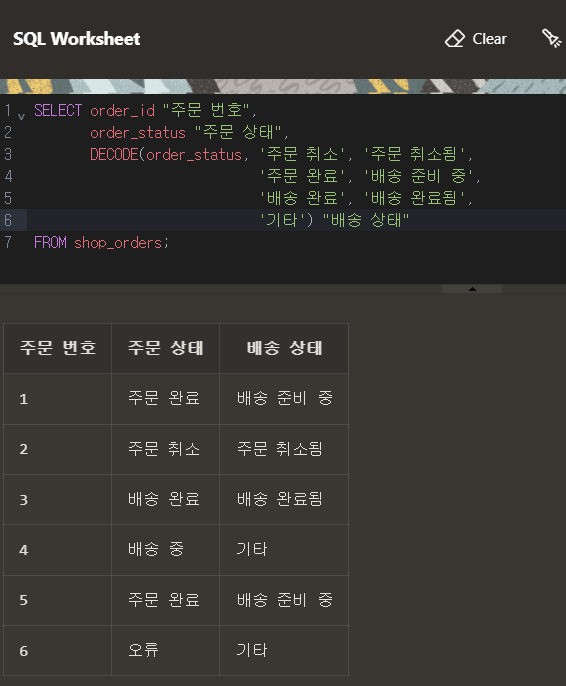 오라클에 가입하고서 SQL Worksheet에서 직접 실습할 수 있다.