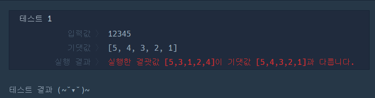 자연수 n을 뒤집어 각 자리 숫자를 원소로 가지는 배열 형태로 리턴해주세요. 예를들어 n이 12345이면 [5,4,3,2,1]을 리턴합니다.