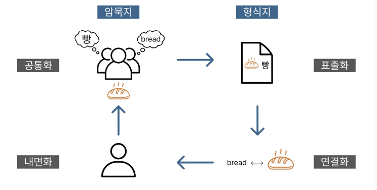 개인의 내면에 있는 지식(=암묵지)를 기호, 숫자 등의 형태롤 통해 표출화를 거쳐 형식지가 됨 - 연결화