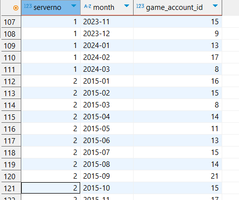 | 조건1) 서버별, 월별 게임계정id 수를 중복값 없이 추출해주세요. 월은 첫 접속일자를 기준으로 계산해주세요. 월은 yyyy-mm의 형태로 추출해주세요. 힌트: 월을 추출하는 방법→날짜는 string(문자열) 형식으로 저장되어 있으므로, 문자열을 자르는 함수를 사용해주시면 좋겠죠? 😃 |