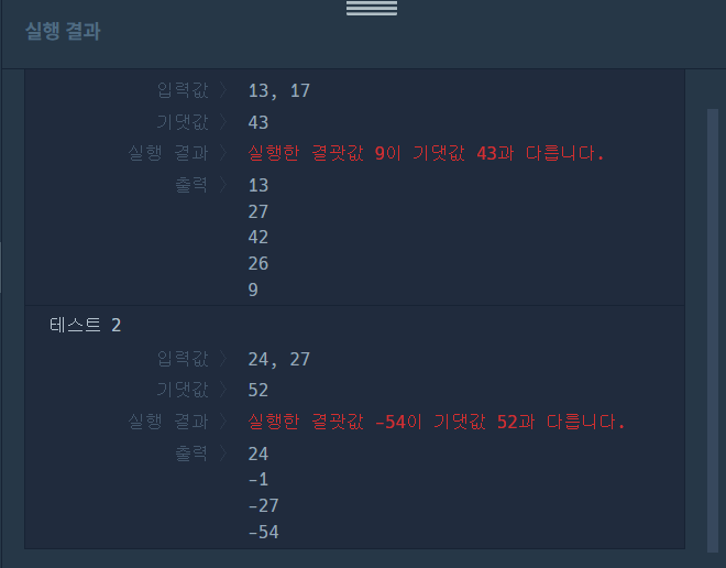 그런데 샘플 케이스를 실행했을 때 결괏값이 기댓값과 일치하지 않아 중간에 print(answer)를 추가해 어떤 식으로 연산하고 있는지를 확인했다.