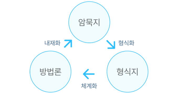 - 만들어진 방법론은 다시 개인에게 전파돼 내재화를 거쳐 암묵지가 되고