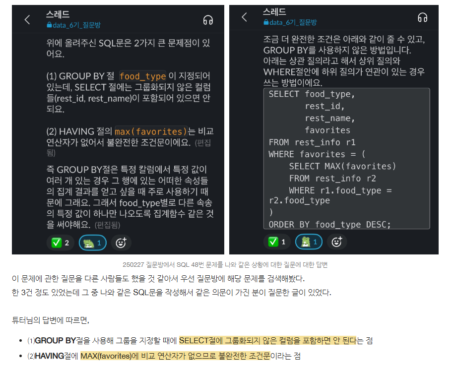 그런데 예전에 다른 문제를 풀다가 의문을 해결하기 위해 질문방에서 본 튜터님 답변 중에 WHERE절의 서브쿼리 내 테이블과 상위 쿼리의 테이블을 어떻게 연결시켜서 SQL을 작성했던 걸 본 적 있는 것 같은데...