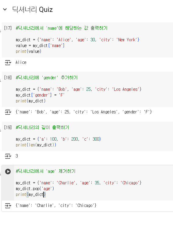 - dict.items() : 모든 키-값 쌍을 (키, 값) 튜플로 구성된 dict_items 객체로 반환함