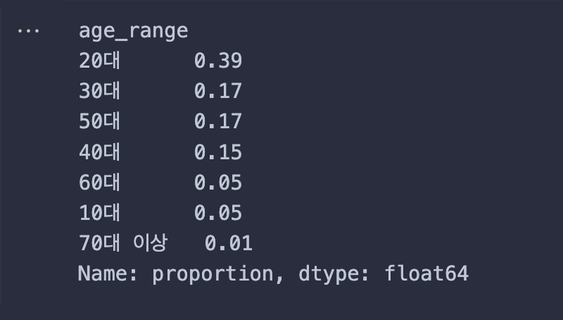 # 그 값이 컬럼 내 차지하는 비율은 어떤지