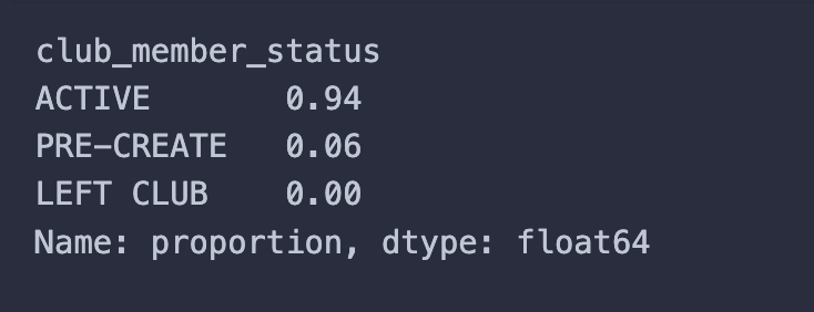 멤버십 고객들의 상태는 ACTIVE(활동 중), PRE-CREATE(가입만 함), LEFT CLUB(탈퇴) 3가지로 값이 들어가 있다.