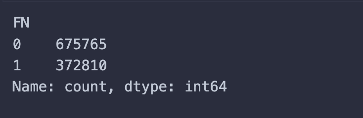 앞서서 살펴본 FN 컬럼의 0(=패션 뉴스 구독하지 않음)의 값의 수와 일치해야 한다고 생각하는데 그렇지 않았다.