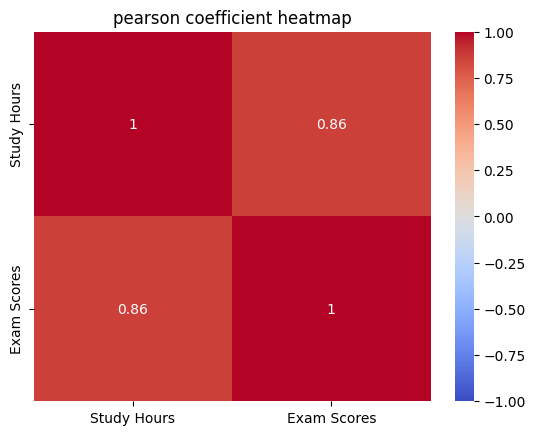 plt.title('pearson coefficient heatmap')
