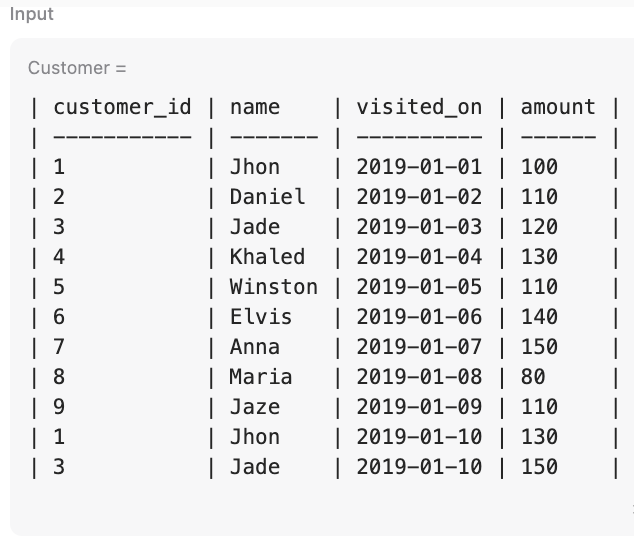 SUM(amount) OVER (ORDER BY visited_on RANGE BETWEEN INTERVAL '6' DAY PRECEDING AND CURRENT ROW) amount,