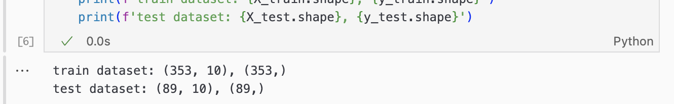 그리고 train_test_split() 함수를 사용해서 학습에 사용할 데이터와 검증에 사용할 데이터를 분리해줬다.