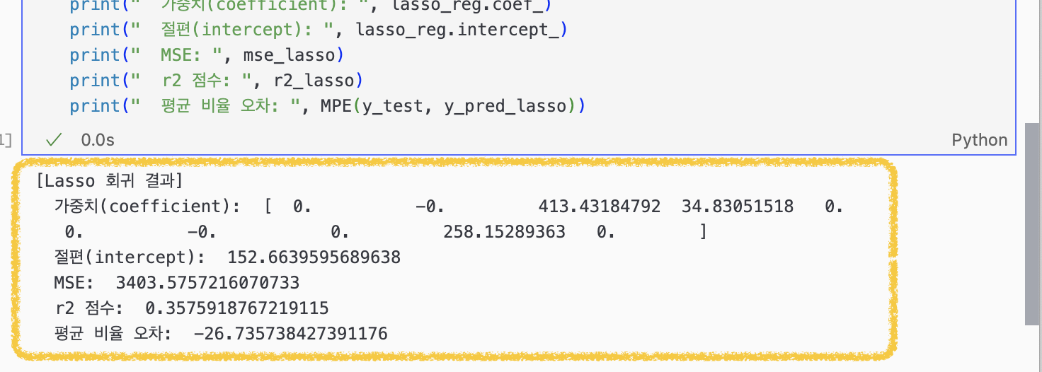 print("[Lasso 회귀 결과]")