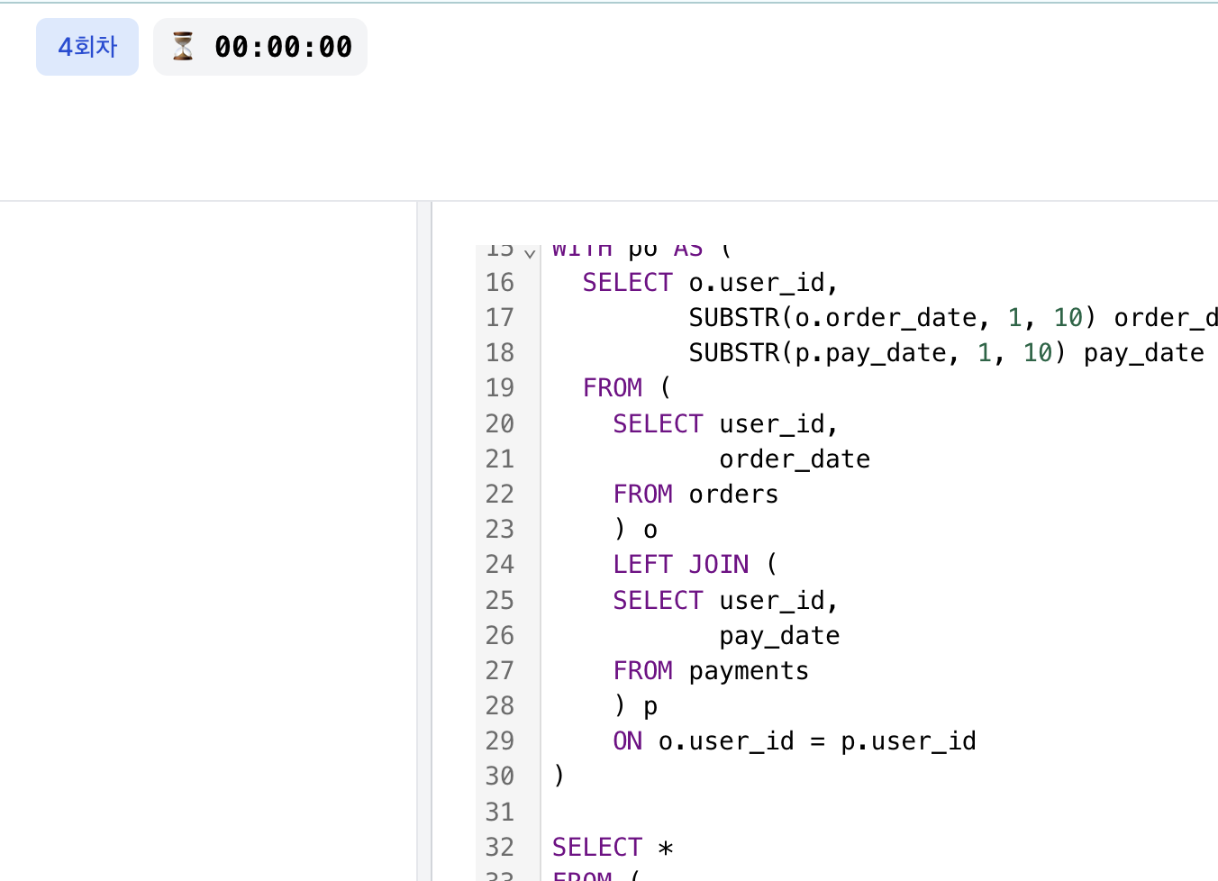 - 첫 번째 결제일보다 이전에 상품을 주문한 사용자