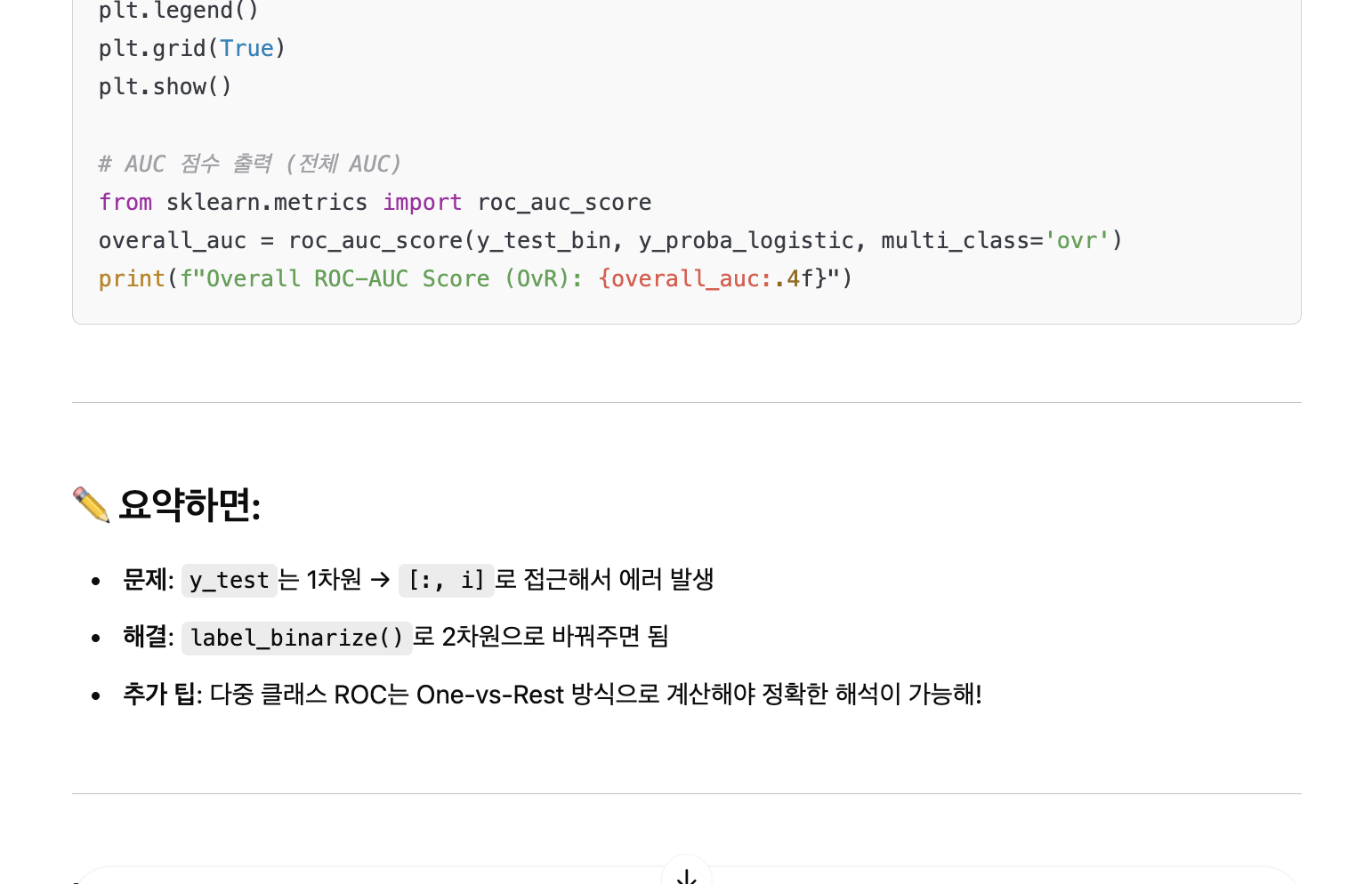 # 모델의 예측 성능 확인하기2(ROC, AUC)