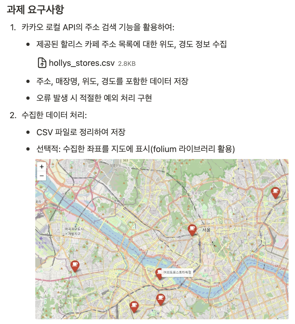 [과제 2] 카카오맵 API를 활용한 할리스 카페 위치 정보 수집