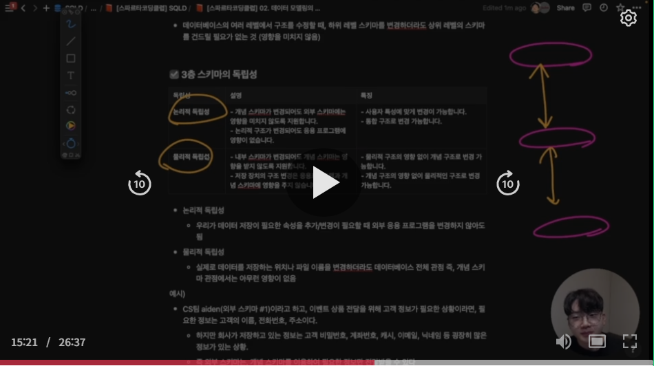 음 3층 스키마의 구조도 공부했지만 내일 끝까지 해당 강의를 수강하고서 같이 정리하는 게 좋을 것 같다.