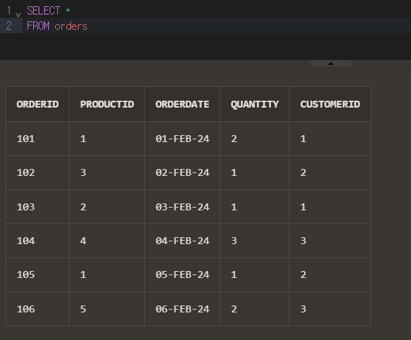 | OrderID | ProductID | OrderDate | Quantity | CustomerID |