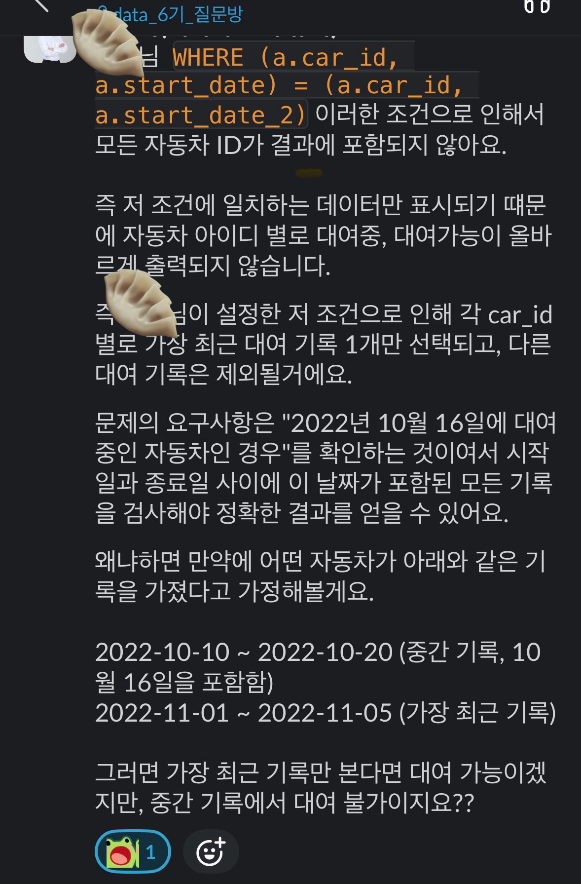 즉 내가 car_id별 1건만 보겠다고 해당 car_id의 가장 최근 기록 1개만 선택한 조건이 잘못된 방식이었다.