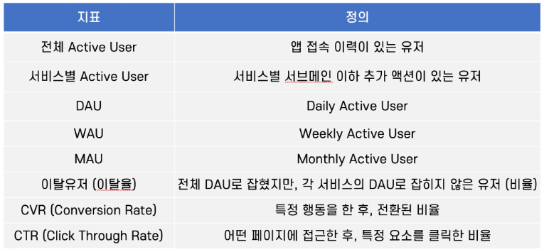 - 그밖에 Active User와 함께 사용하는 주요 지표들